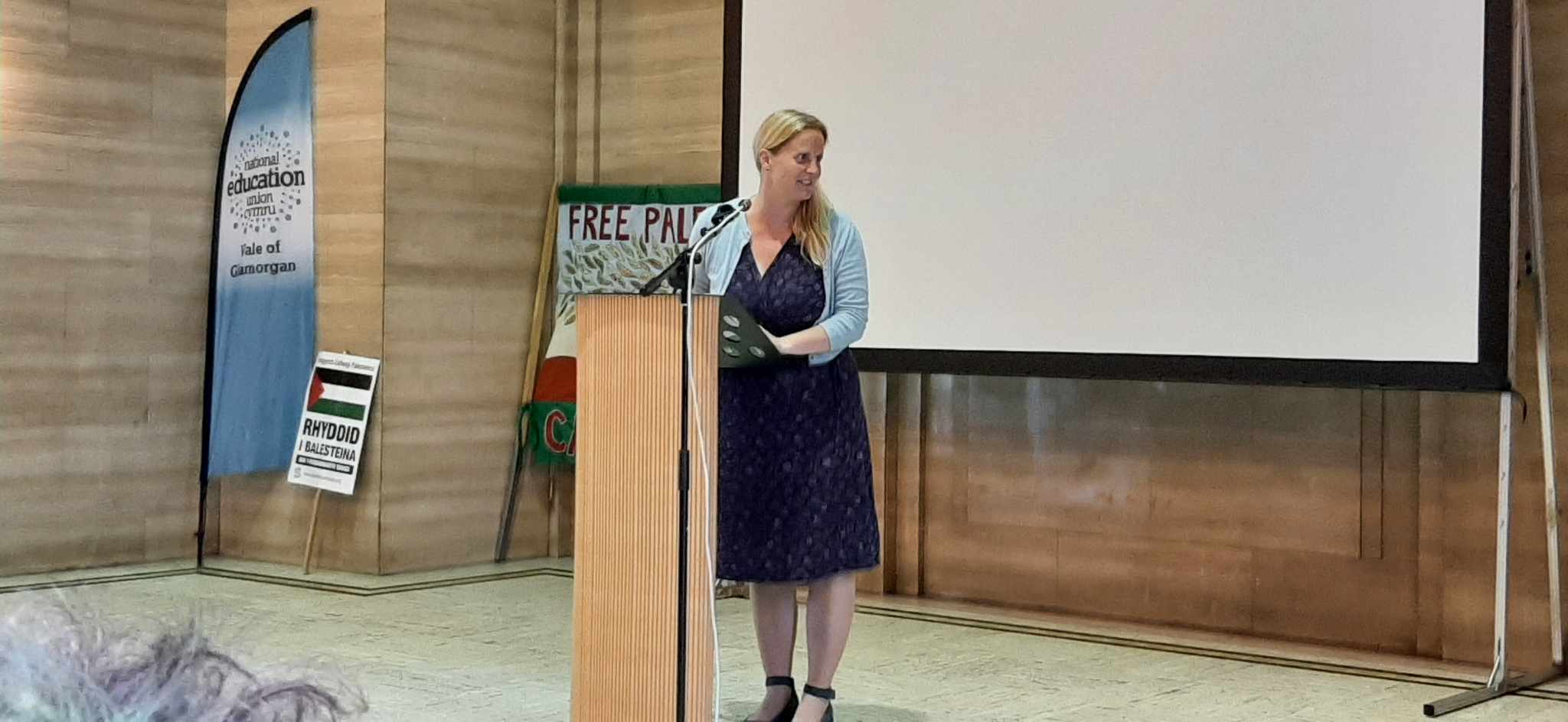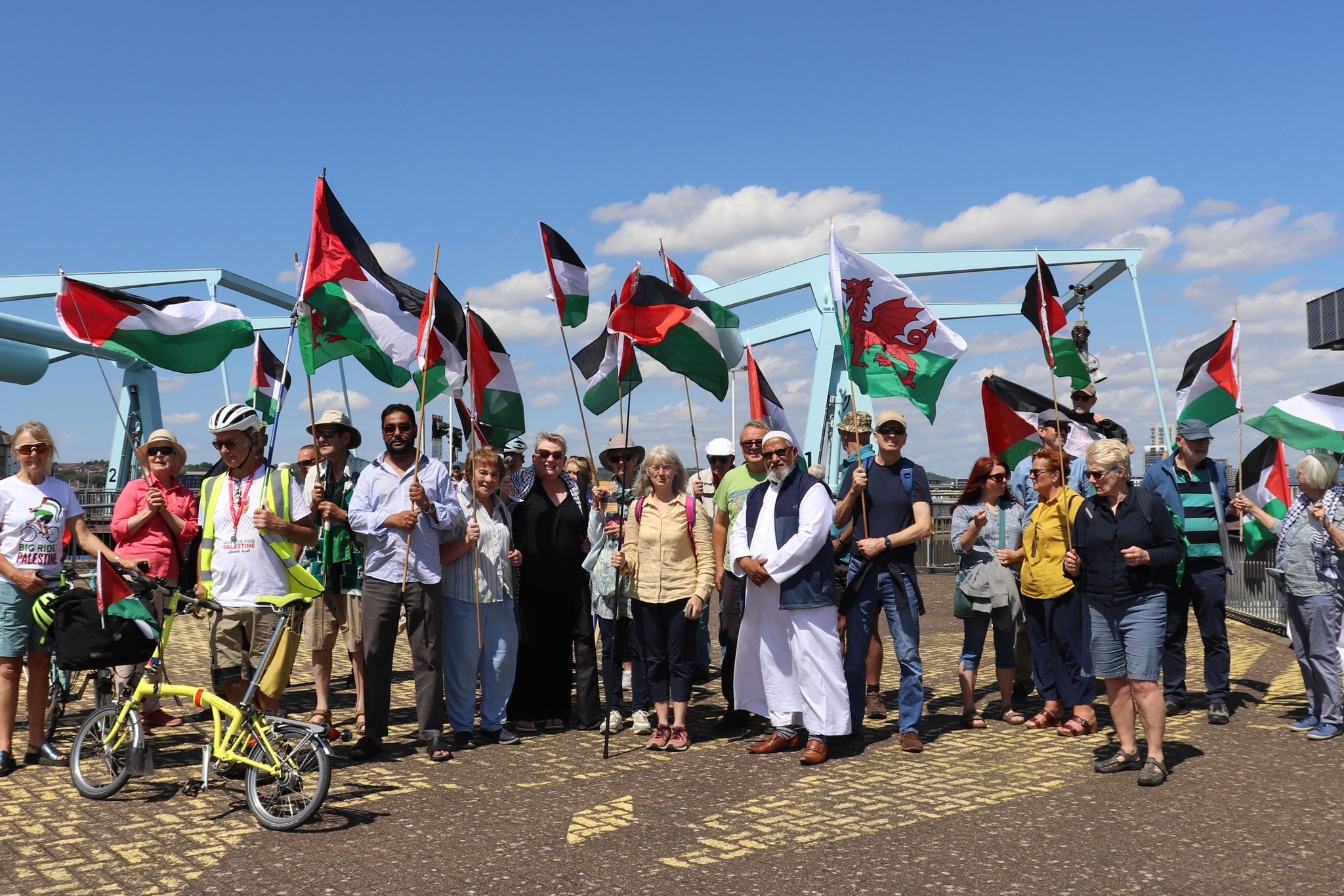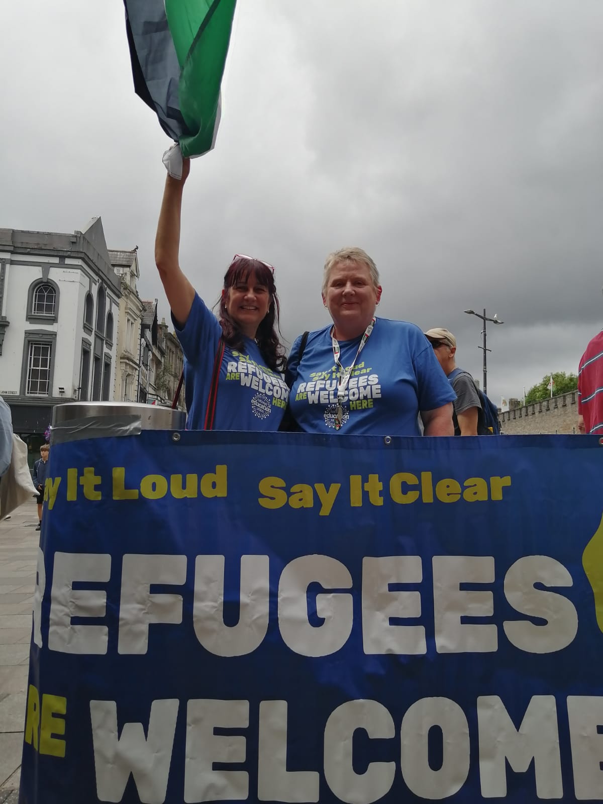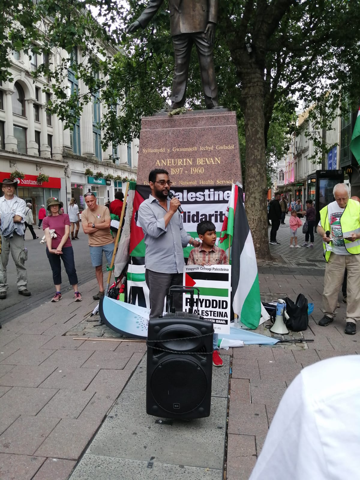 RCT PSC and other PSC branches in Wales had a wonderful weekend , celebrating the work of Freedom Flotilla Coalition We welcomed the Handala to Cardiff on Friday July 7th followed by a public meeting in the Senedd. Saturday 8th was a very busy day with an emergency demo called “Hands off Jenin” where we had many amazing speakers and Kathleen Steelandt could help me fly the flag for the National Education Union: Wales International solidarity Network in solidarity with Palestine. We marched with banners to the BBC building where we handed in a letter protesting at their coverage of Palestine in the media.