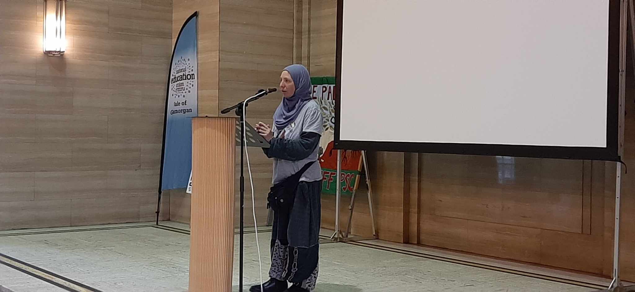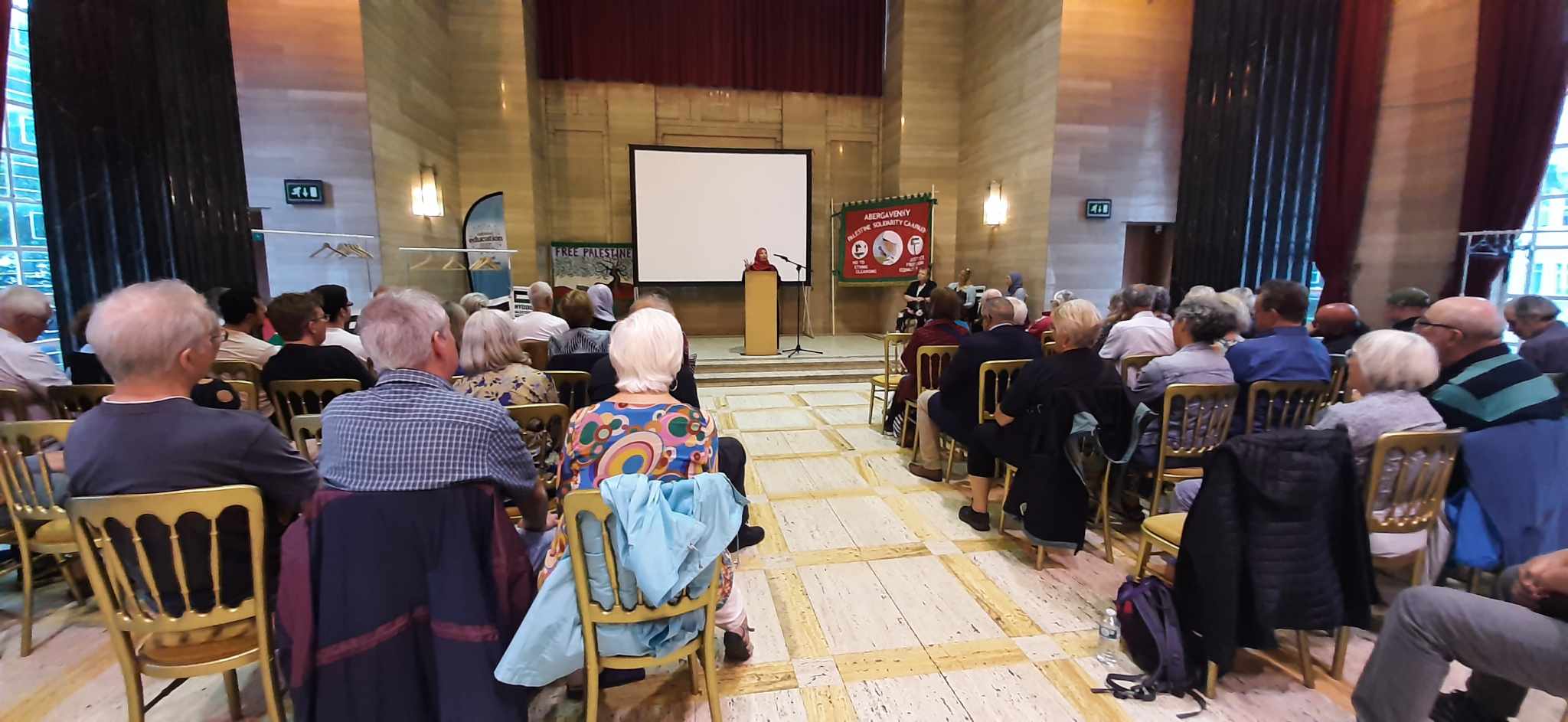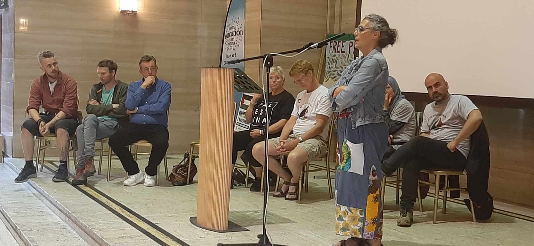 On Saturday night I chaired a public Palestine meeting at the Temple of Peace with Beth Winter MP, Summayya Ahmed a local Palestinian, and Zohar Chamberlaine Regev from the Flotilla organisation and currently part of the crew. They all spoke movingly about the situation in Palestine which has been so much worse recently and other members of the crew then came on stage and made contributions.