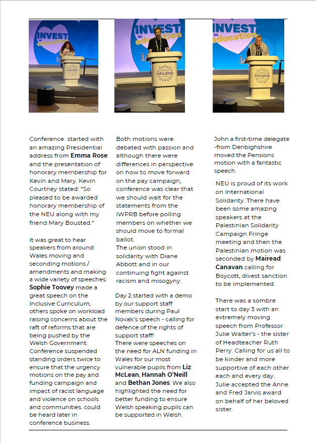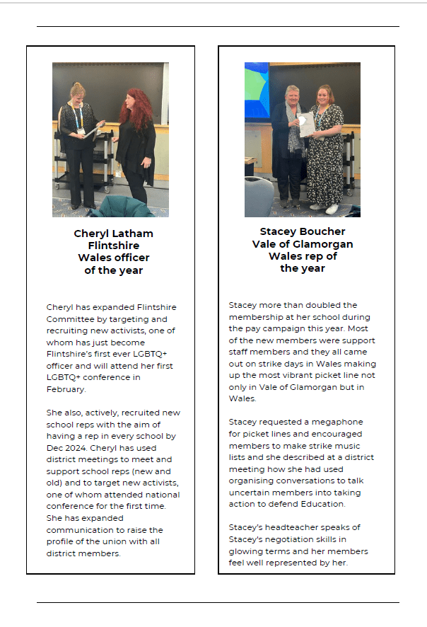 • Powys Consultation Rerun – Supporting Moribund Districts – the Executive agreed that the union engage in a 12-month organising campaign to reinvigorate the branch and districts, with a view to a second consultation if required in Autumn 2024.