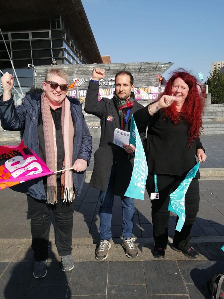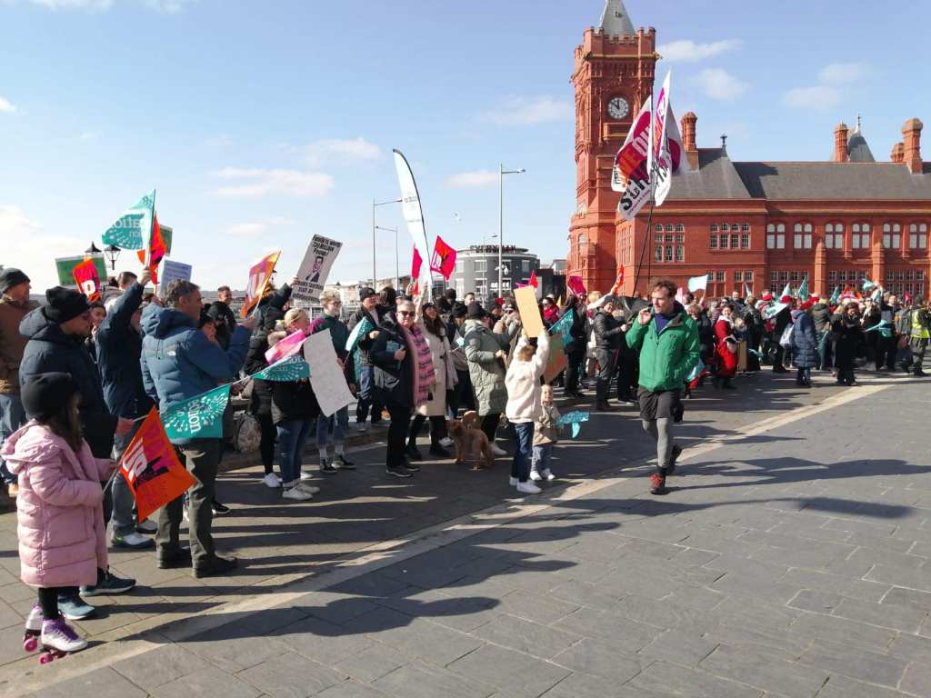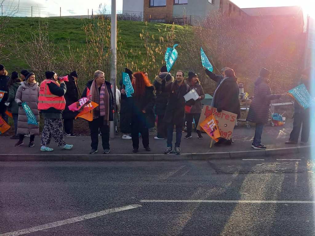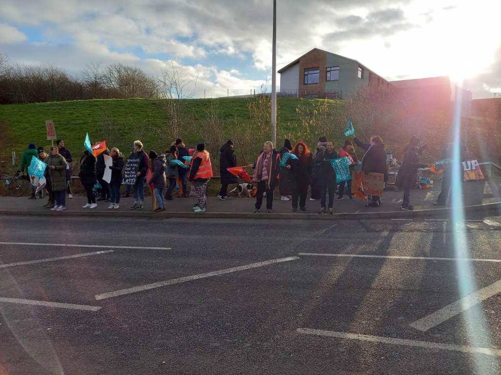 Our second strike day started early in the Vale of Glamorgan with an excellent picket line at Ysgol y Deri this morning – it was big and loud with the BBC there to talk to members. There was a real show of solidarity with support staff and teachers striking and standing together, we all know that funding of any pay rise is crucial to save jobs.